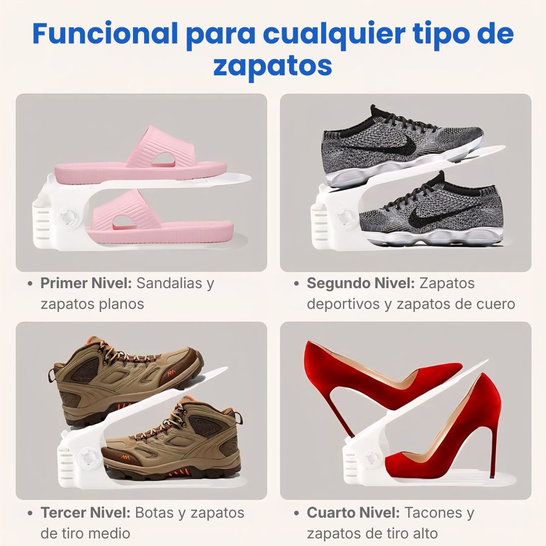 Organiza hasta 6 pares de zapatos y recupera espacio en tu clóset. Despídete del desorden, protege tus zapatos y mantén todo visible y ordenado en minutos.